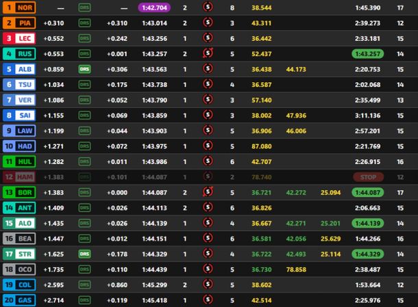 - Lando Norris (McLaren): 293 puntos